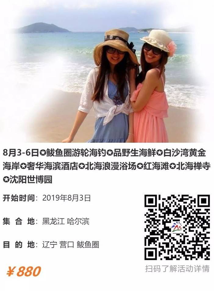 (●—●)8月3-6日✪鲅鱼圈游轮海钓✪品野生海鲜✪白沙湾黄金海岸✪奢华海滨酒店✪北海浪漫浴场✪红海滩✪北海禅寺✪沈阳世博园✪4日避暑放纵游【880元】