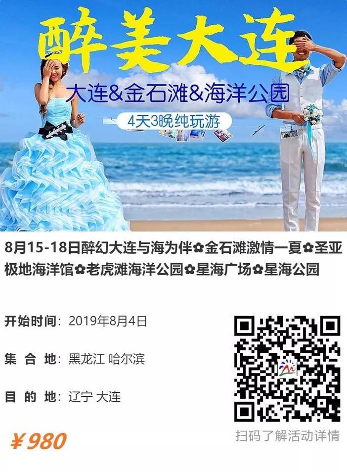 (●—●)8月15-18日✿醉幻大连✿与海为伴✿金石滩激情一夏✿圣亚极地海洋馆✿老虎滩海洋公园✿星海广场✿皇家园林星海公园✿远观中国航母✿山海广场4日海滨欢乐游 【980元】