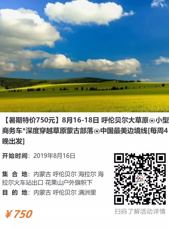 (●—●)【暑期特价750元】8月16-18日 呼伦贝尔大草原⍟小型商务车*深度穿越草原蒙古部落⍟中国最美边境线