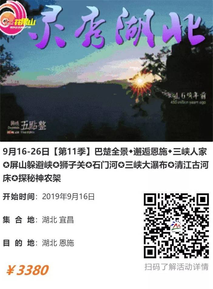 (●—●)9月16-26日【第十一季】巴楚全景◆邂逅恩施◆三峡人家✪屏山躲避峡✪狮子关✪石门河✪三峡大瀑布✪清江古河床最美徒步✪探访神农架✪11日鄂西风情之旅【3380元】