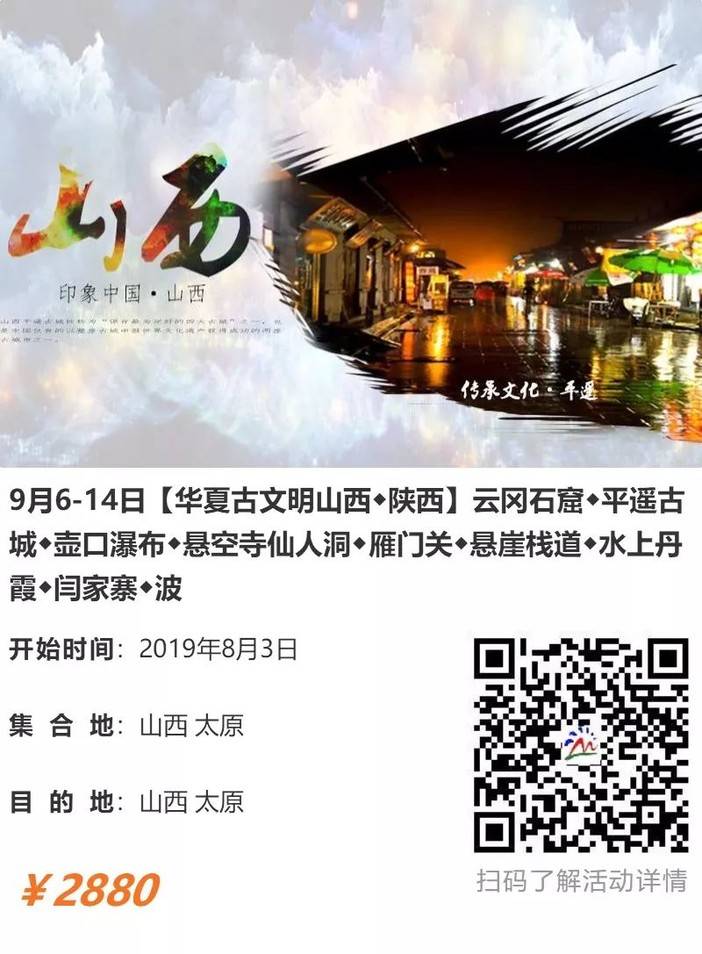 (●—●)9月6-14日【华夏古文明山西◆陕西】云冈石窟◆平遥古城◆壶口瀑布◆悬空寺仙人洞◆雁门关◆悬崖栈道◆水上丹霞◆闫家寨◆波浪谷/雨岔大峡谷◆榆次官道巷◆万年冰洞/碛口/王家大院/李家山◆9日遥原之旅【2880元】