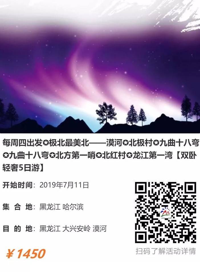 (●—●)每周四出发✪极北最美北——漠河✪北极村✪九曲十八弯✪九曲十八弯✪北方第一哨✪北红村✪龙江第一湾【双卧轻奢5日游】【含往返硬卧1450元】