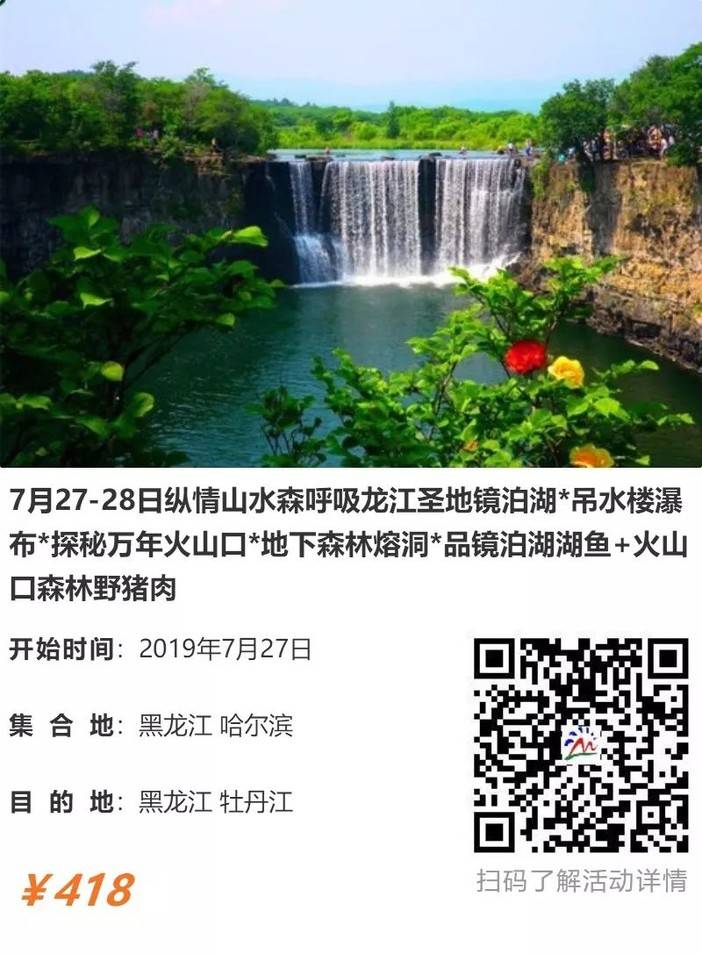 (●—●)【别样镜泊湖加量不加价】每周末纵情山水森呼吸龙江圣地镜泊湖*吊水楼瀑布*探秘万年火山口*地下森林熔洞*品镜泊湖湖鱼+火山口森林野猪肉【418元俱包括吊水湖门票】