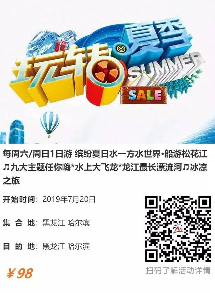 █【合作活动】每周六/周日1日游 缤纷夏日水一方水世界•船游松花江♬九大主题任你嗨*水上大飞龙*龙江最长漂流河♬冰凉之旅【游轮+水世界=98元】