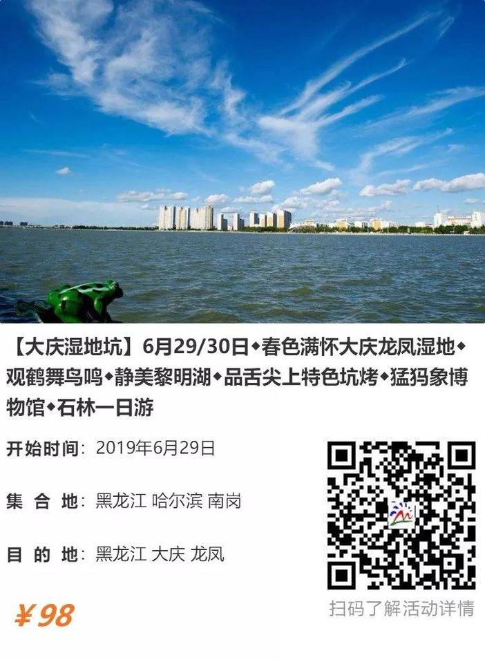 █每周末【大庆坑烤湿地】每周末春色满怀龙凤湿地◆观鹤舞鸟鸣◆静美黎明湖◆品舌尖上特色坑烤◆猛犸象博物馆【98元】