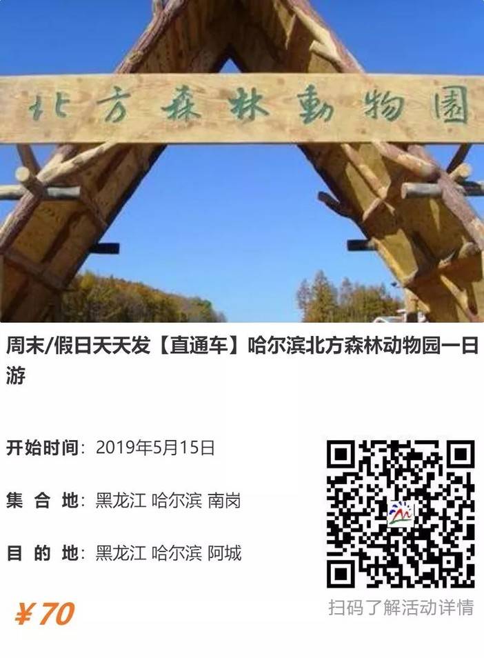 █每周末【直通车】哈尔滨北方森林动物园一日游 84元