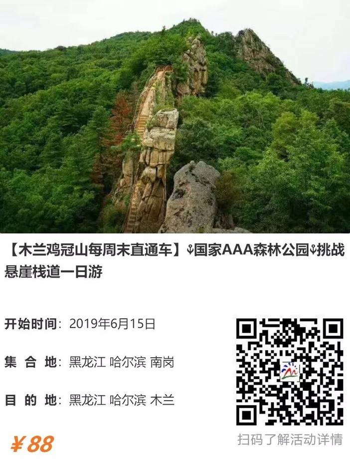 █【木兰鸡冠山每周末直通车88元不含餐】⚘国家AAA森林公园⚘挑战悬崖栈道赏一日游
