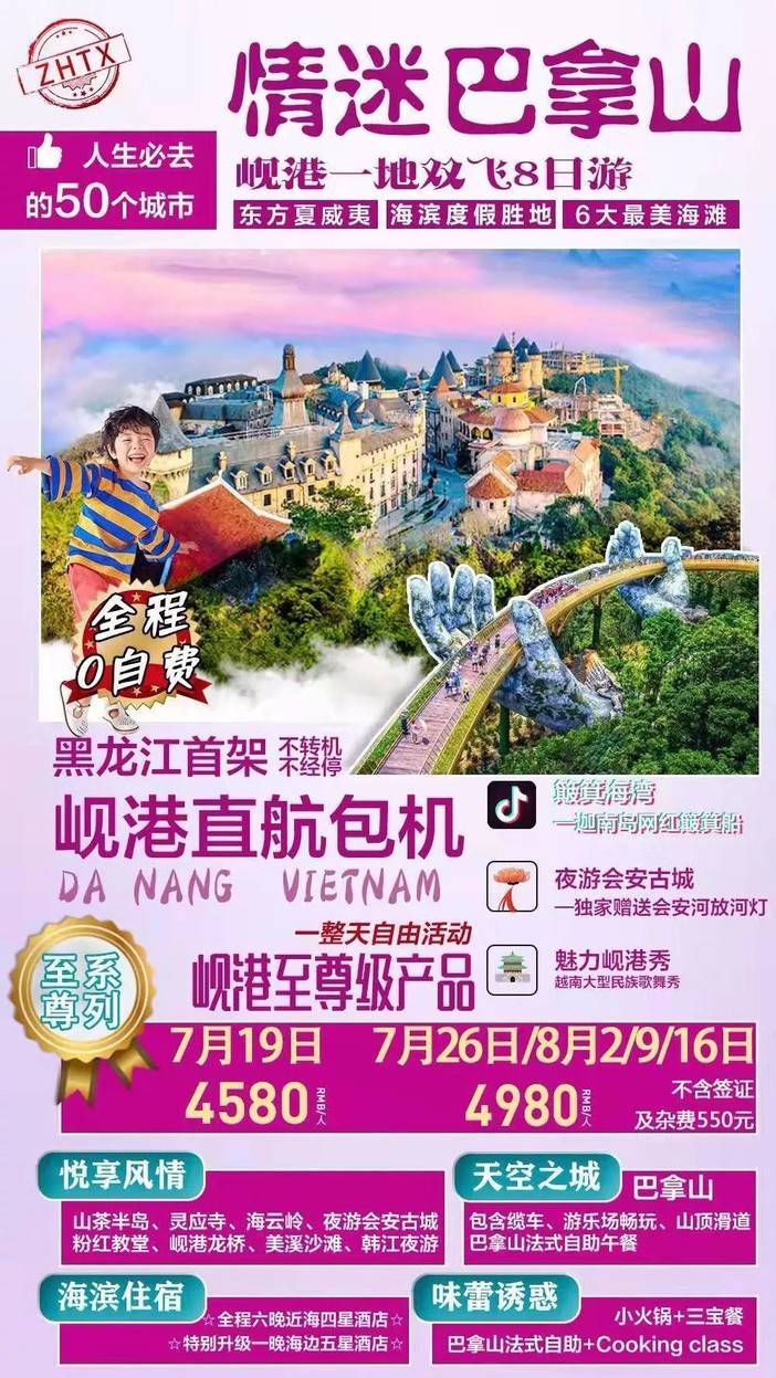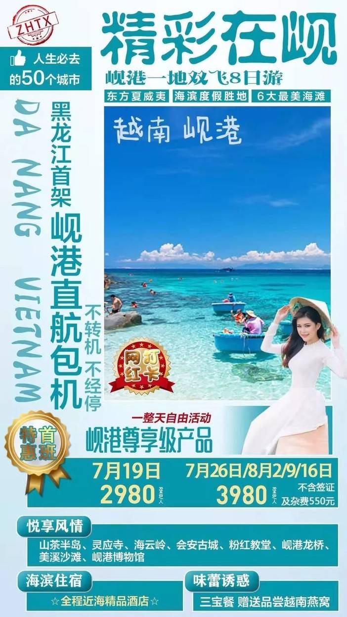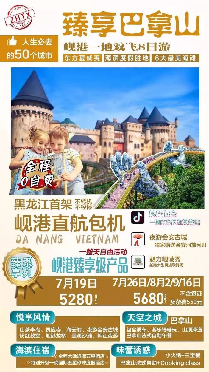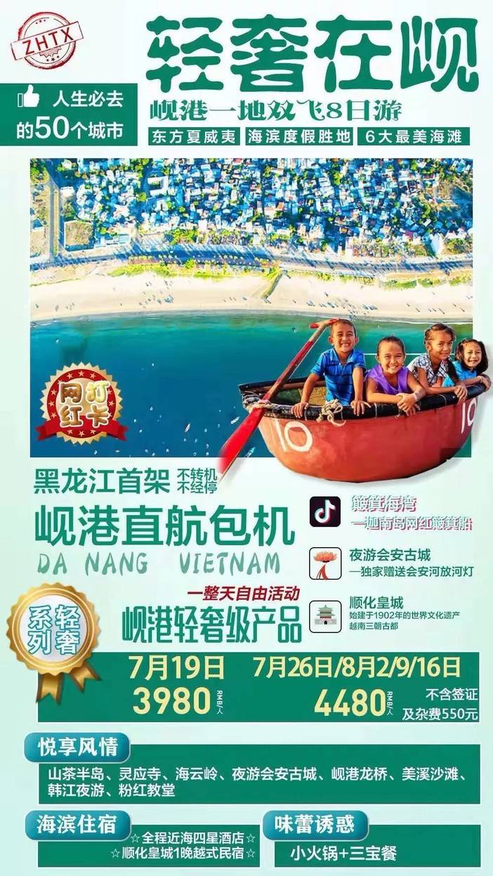 哈尔滨直飞岘港-----岘港包机8日=盛大起航畅玩品质游!!!