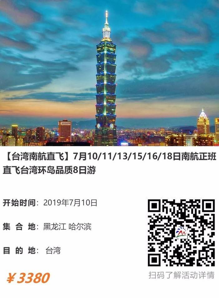 【台湾南航直飞】7月10/11/13/15/16/18日南航正班直飞台湾环岛品质8日游
