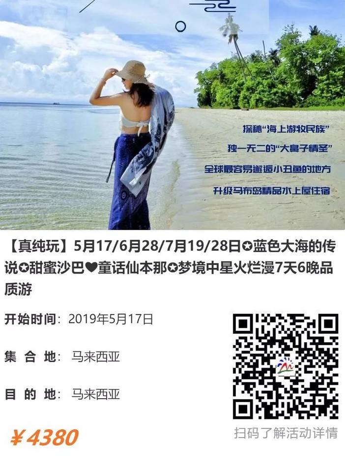 (●—●)【真纯玩仙本那】5月17/6月28/7月19/28日出发✪坠入北纬4°的蓝马布岛+卡帕莱+仙本那+敦沙卡兰6天5晚密色之约【3980元】