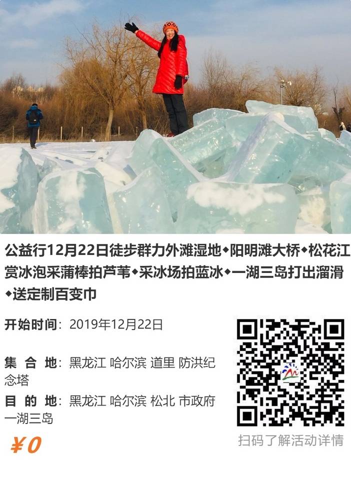 █公益行0元【第10次】12月22日◆徒步群力外滩湿地◆阳明滩大桥◆松花江赏冰泡采蒲棒拍芦苇◆采冰场拍蓝冰◆一湖三岛打出溜滑◆送定制百变巾