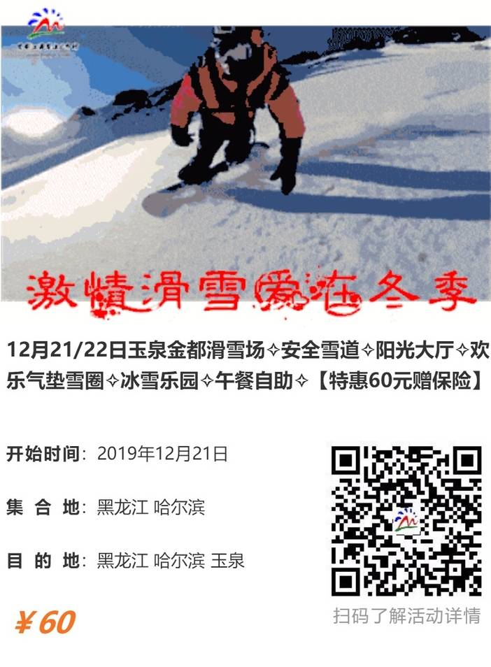 █12月21/22日玉泉金都滑雪场 安全雪道 阳光大厅 欢乐气垫雪圈 冰雪乐园 午餐自助 【特惠60元含大巴/雪具/滑雪/自助午餐/保险 平房发车】