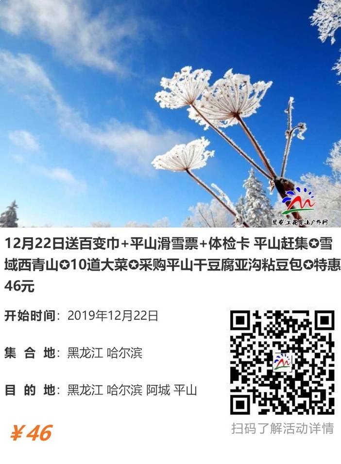 █12月22日送定制百变巾+平山神鹿免费滑雪票+友谊医院千元免费体检卡 平山赶集✪雪域山川穿越✪10道大菜✪采购平山干豆腐亚沟粘豆包✪原价55元本次活动特惠46元