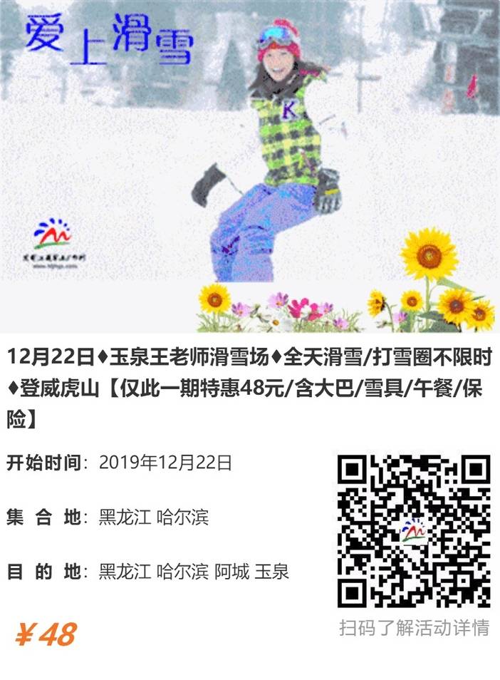 █12月22日玉泉王老师滑雪场全天滑雪打雪圈【原价55元本次活动特惠48元仅此一期含大巴/雪具/滑雪/丰盛午餐/保险】