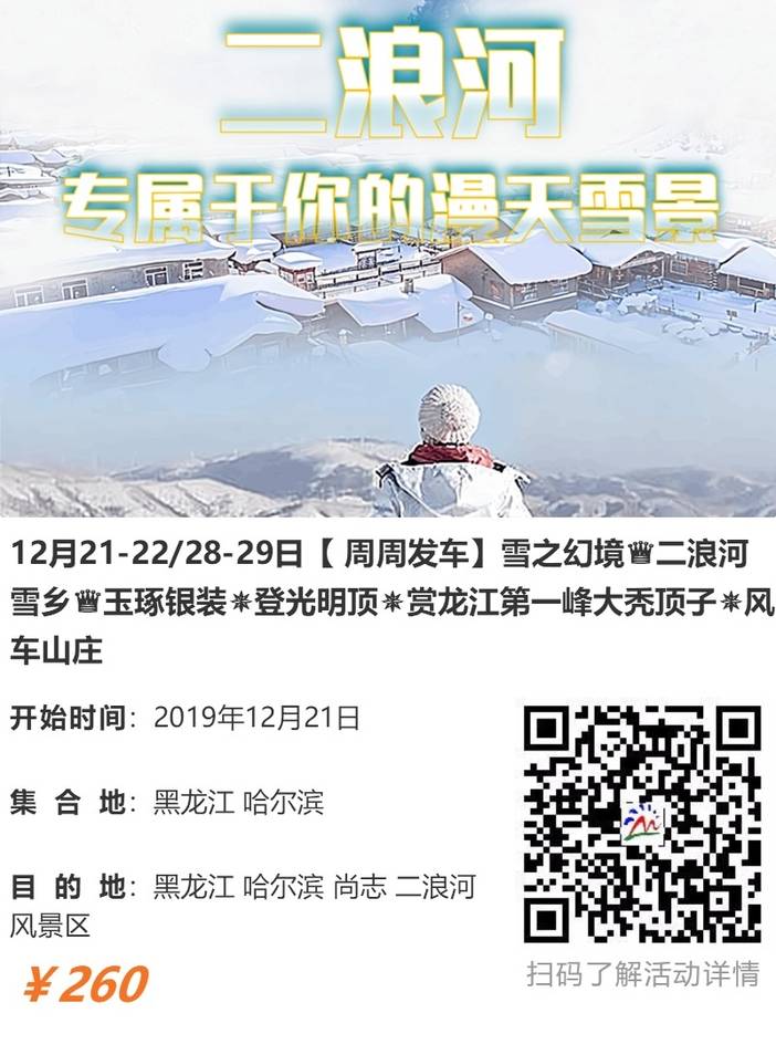 █12月21-22日雪之幻境二浪河新雪乡玉琢银装雪谷光明顶/走进童话世界赏龙江第一峰大秃顶子仙境风车山庄【260元送定制版百变巾】