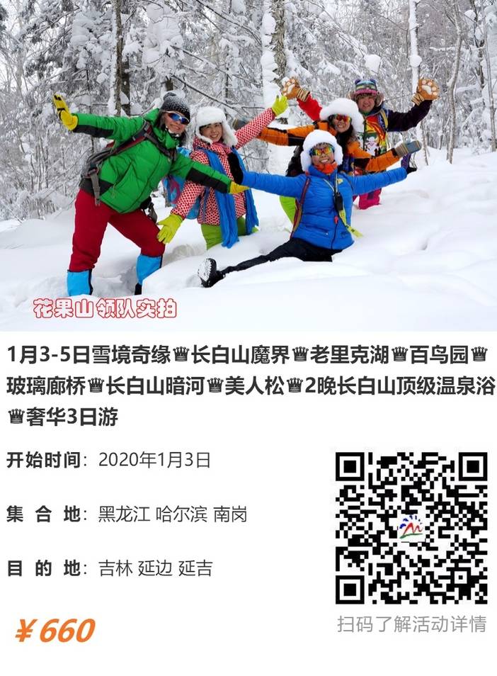 █1月3-5日 雪境奇缘♛延吉老里克湖♛长白山魔界♛长白山野鸭湖百鸟家园♛廊桥玻璃栈道♛美人松世界雕塑园♛长白山暗河景区♛洛河文化园♛2晚长白山五星顶级温泉♛奢华品质三日游