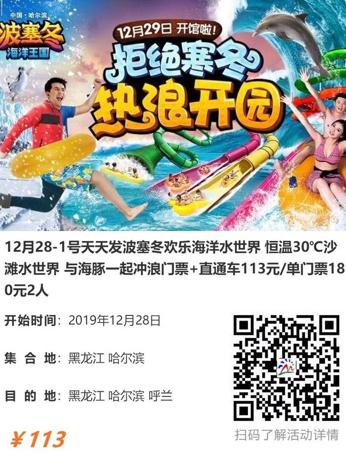 12月28/29/30/31/1日波塞冬欢乐海洋水世界 恒温30℃沙滩水世界 与海豚一起冲浪门票+直通车113元/////自驾单门票180元2人