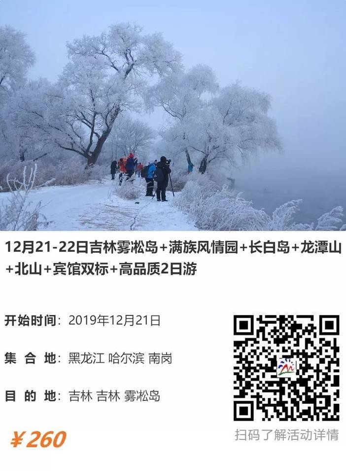 █12月21-22日吉林雾凇岛+满族风情园+长白岛+龙潭山+北山+宾馆双标+高品质2日游 花果山笨笨猫领队带队【260元】