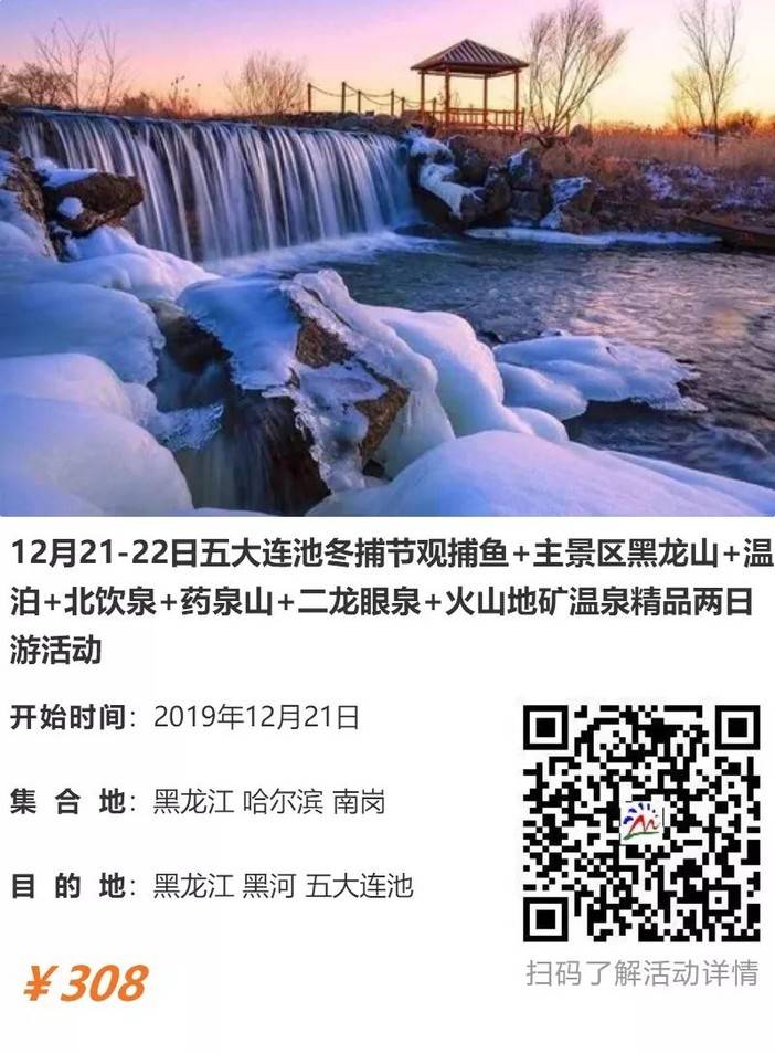 █12月21-22日五大连池冬捕节观捕鱼+主景区黑龙山+温泊+北饮泉+药泉山+二龙眼泉+火山地矿温泉精品两日游活动【308元】