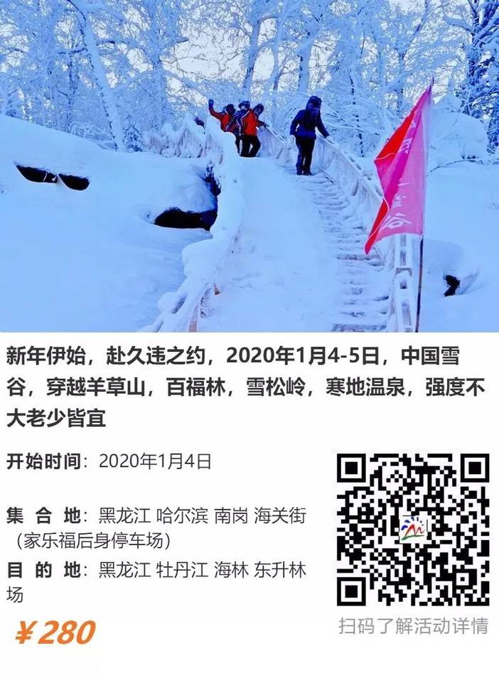 █2020年1月4-5日新年伊始,赴久违之约,花果山户外经典12年线路中国雪谷穿越羊草山,百福林,雪松岭,寒地温泉休闲2日游280元