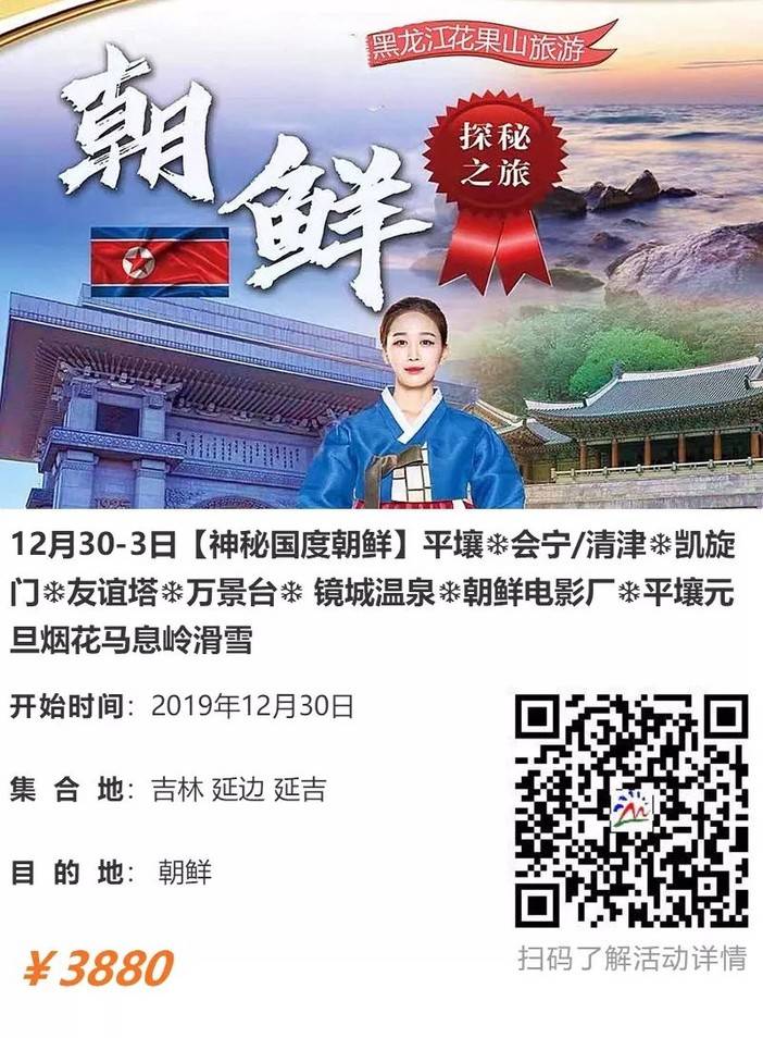 █12月30-1月3日【元旦假期直飞神秘国度朝鲜】跨年之旅❄平壤❄延吉❄龙井❄会宁❄清津❄凯旋门❄友谊塔❄万景台❄ 镜城温泉❄朝鲜电影制片厂❄平壤元旦烟花晚会❄马息岭滑雪❄朝鲜深度5日游【3880元】