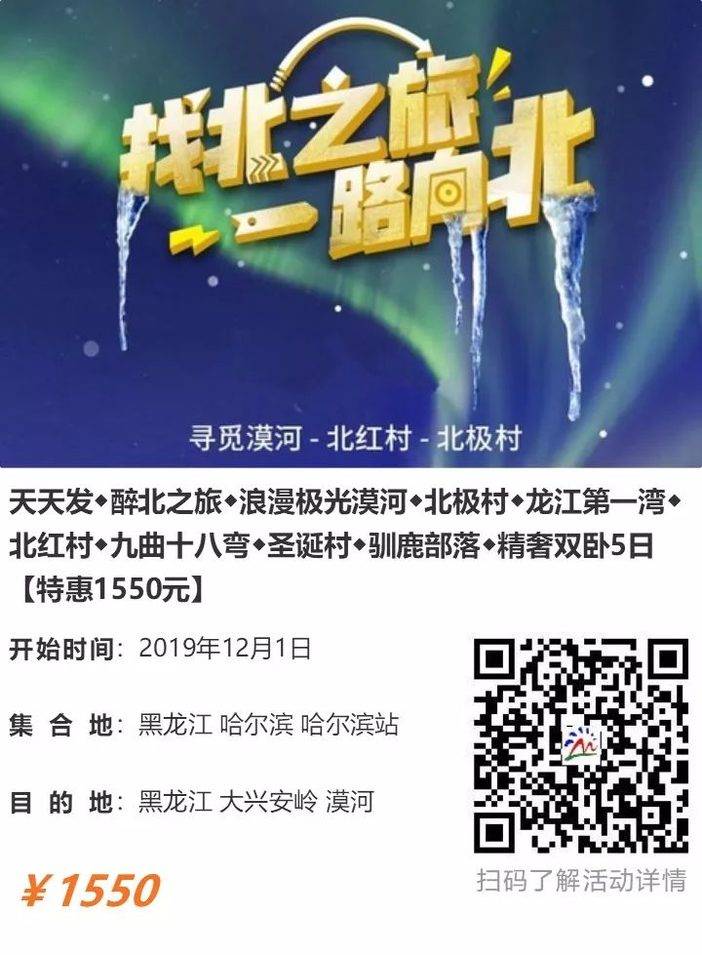 █天天发◆醉北之旅◆浪漫极光漠河◆北极村◆龙江第一湾◆北红村◆九曲十八弯◆圣诞村◆驯鹿部落◆精奢双卧5日【特惠1550元】