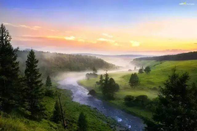 【绰尔河】,犹如一条碧玉翠带,千回百转、水流穿峡而过