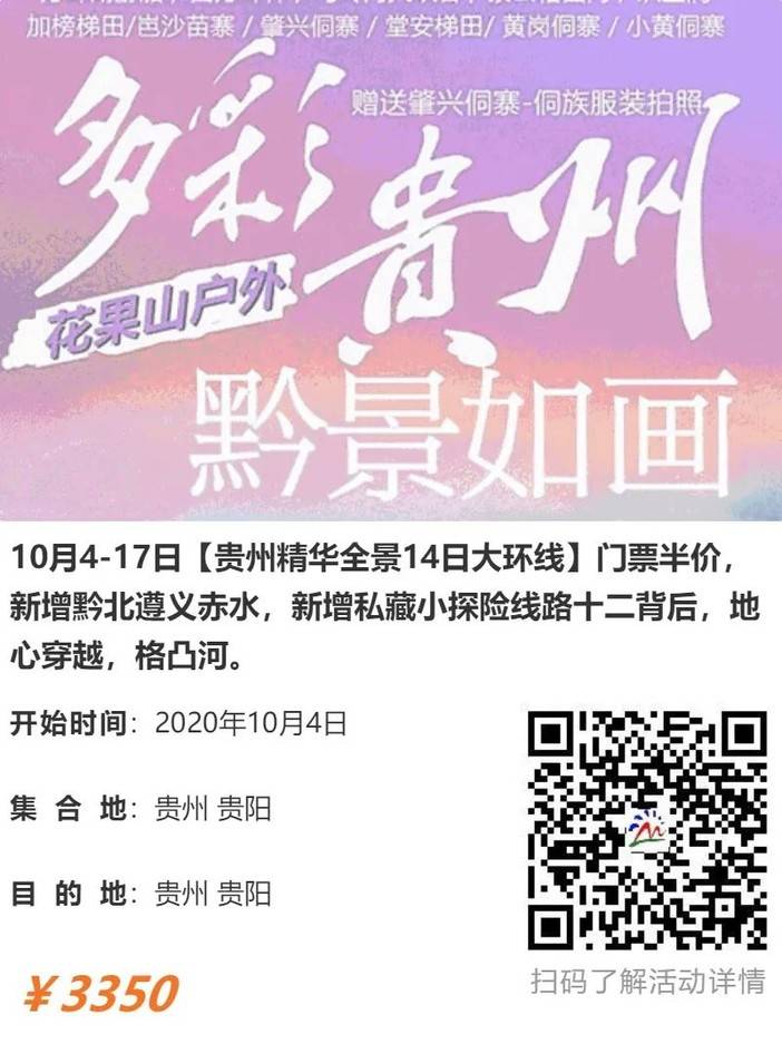 1.10月4-17日【贵州精华全景14日大环线+黔东南+黔西+黔西南+黔北】花果山独家开发新景点:十二背后.双河谷地心穿越 紫云格凸河 赤水大瀑布 丙安古镇 梵净山 荔波大+小七孔 西江千户苗寨 岜沙苗寨.肇兴+黄岗+小黄侗寨 加榜梯田 万峰湖游船 西万峰林 马岭河大峡谷 黄果树 茅台镇 遵义.....原生态山清水秀+风土人情【3350元含当地交通+宾馆+餐+长桌宴+桐寨民族服饰+保险】