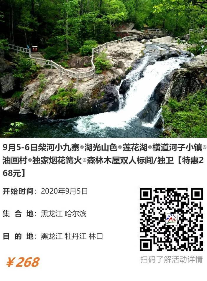 9月12-13/19-20/26-27日灵动柴河小九寨 “东北小三峡”湖光山色-莲花湖 百年横道河子俄国风情小镇 油画村 情侣峰 九天瀑布 悬索玻璃桥 18弯木质栈桥 中东铁路机车库 森林松木民宿/独家烟花篝火【特惠仅268元=森林木屋别墅标间/独卫/2正1早餐/门票/保险