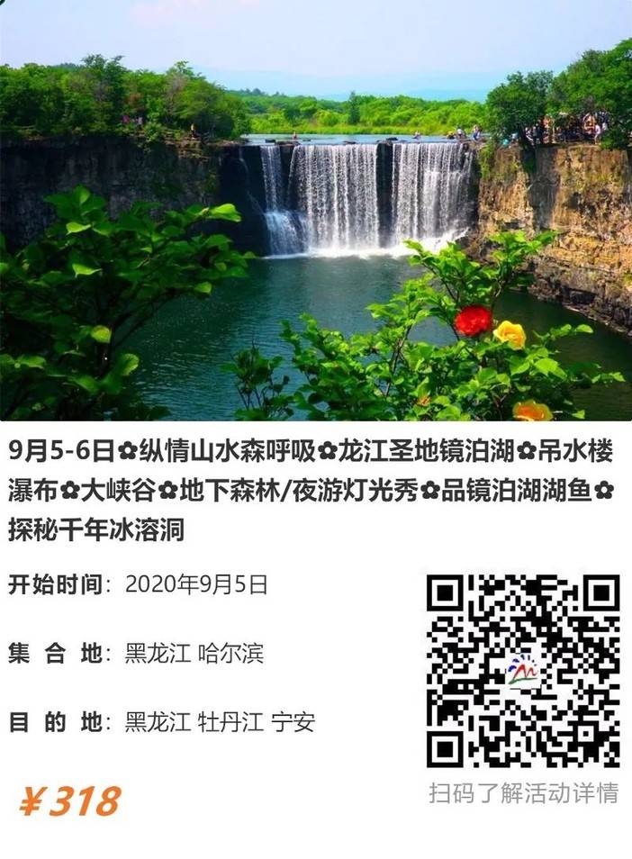 10月2-3日✿纵情山水森呼吸✿龙江圣地镜泊湖5A景区✿吊水楼大瀑布✿大瀑布飞人表演✿毛公山✿芬兰小镇观火山岩石✿镜泊大峡谷✿火山口地下森林景区✿大峡谷夜游灯光秀✿品镜泊湖湖鱼✿标间/独立卫浴✿周末两日欢乐游【420元=车费+地下森林门票和景交车+双标住宿+2证1早餐】