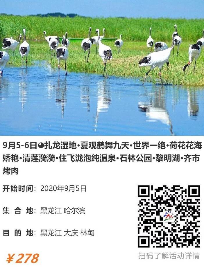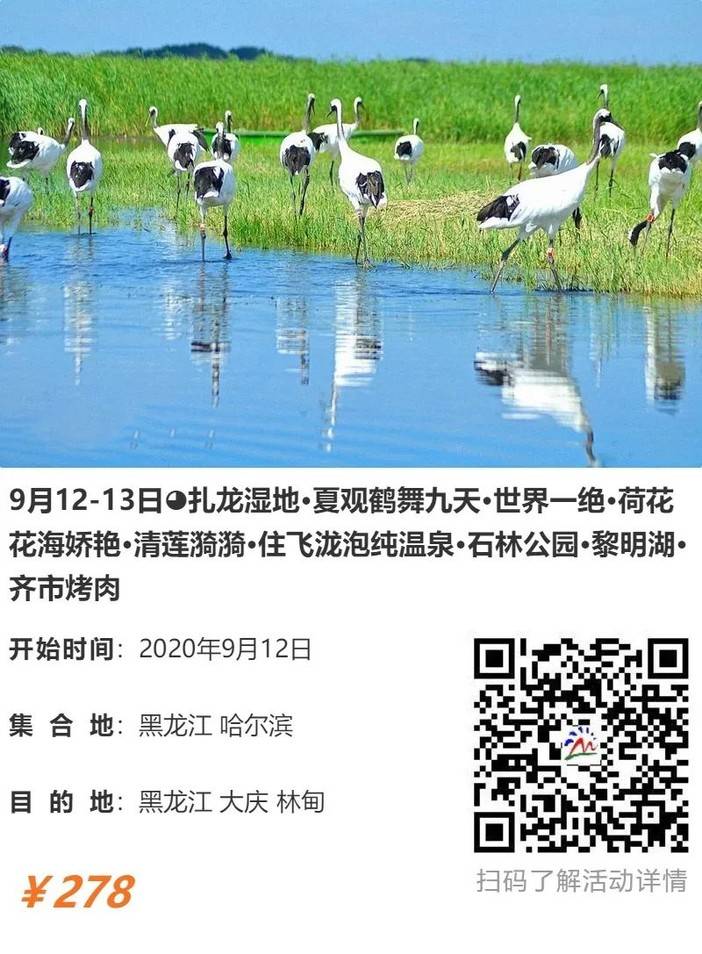 9月12-13/19-20/日扎龙湿地 夏观鹤舞九天 苇荡清荡 仙姿廓野 住飞泷泡纯温泉 石林公园 徒步黎明湖栈道 齐齐哈尔烤肉【278元=车费+保险+双标准4星住宿+温泉+2正1早餐含齐齐哈尔烤肉】