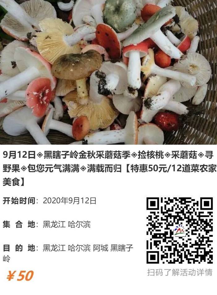 9月12日 黑瞎子岭金秋采蘑菇季 捡核桃 采蘑菇 寻野果 包您元气满满 满载而归【特惠50元/12道菜农家美食】