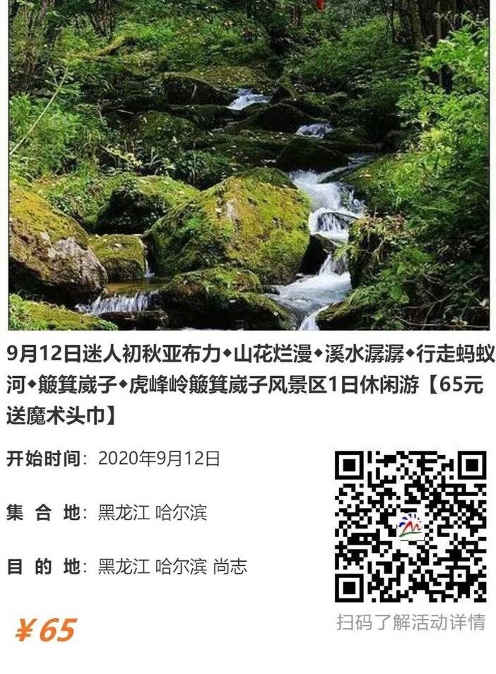 9月12日迷人初秋亚布力◆山花烂漫◆溪水潺潺◆行走蚂蚁河◆簸箕崴子◆虎峰岭簸箕崴子风景区1日休闲游【特惠65元送魔术头巾】