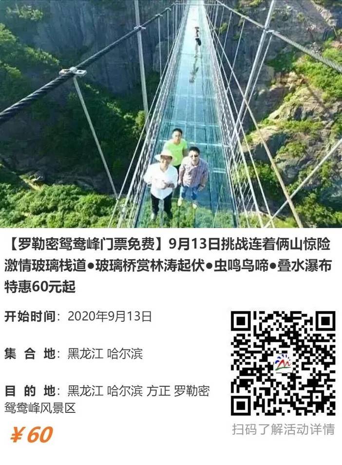 【罗勒密鸳鸯峰免大门票】9月13日挑战连着俩山惊险激情玻璃栈道●玻璃桥赏林涛起伏●虫鸣鸟啼●叠水瀑布特惠60元起【新增玻璃滑道漂流本周特惠买一送一】