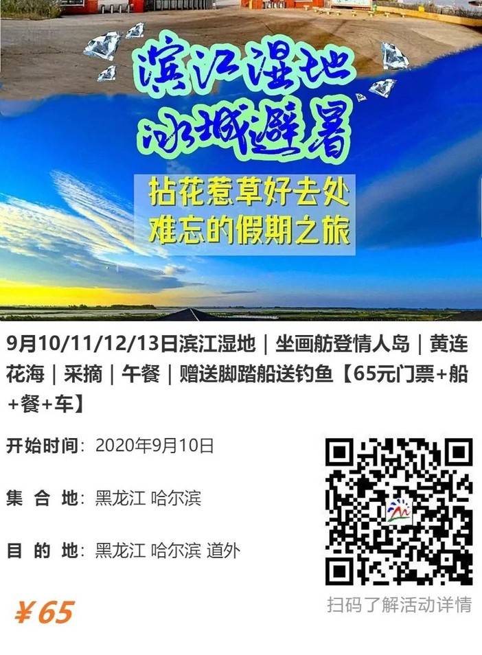 9月10/11/12/13日滨江湿地风景区|坐画舫登情人岛|拈花惹草好去处|采摘小园菜|自助午餐|免费垂钓||免费脚踏船|黄连花海|美拍一日游【68元/门票+船票+餐+车】