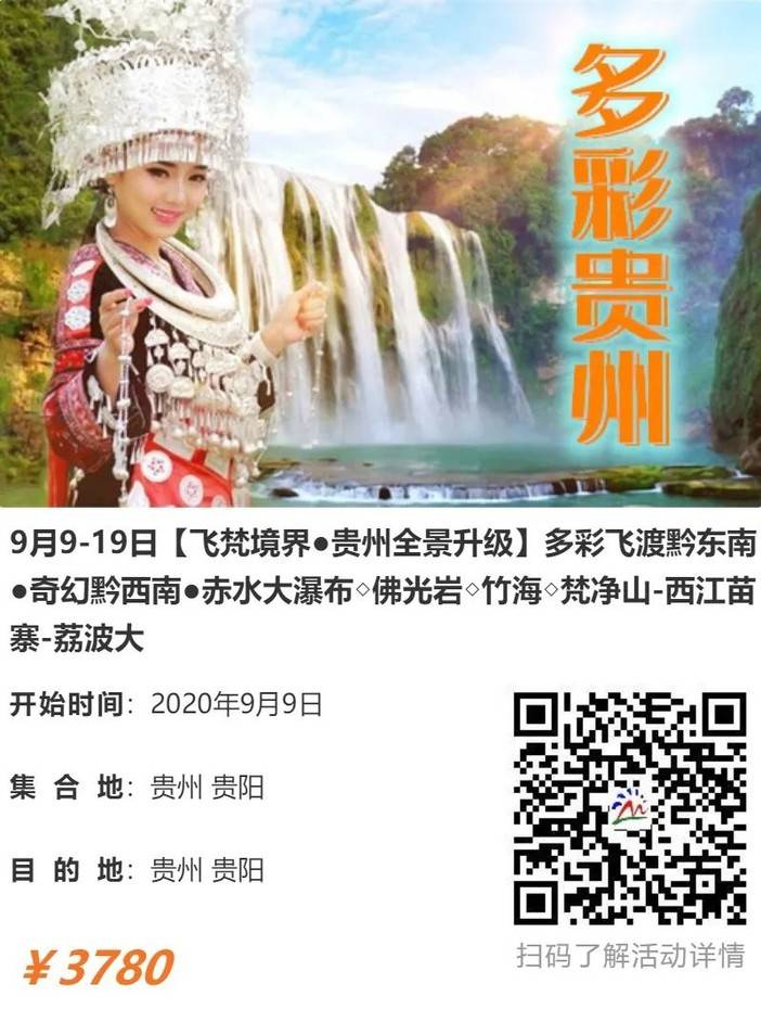 9月9-19日【飞梵境界●贵州全景升级版】多彩飞渡黔东南●奇幻黔西南●◇赤水大瀑布◇佛光◇岩竹海◇圣地梵净山-西江苗寨-荔波大小七孔-原生态苗乡堂安侗寨◇马岭河◇黄果树瀑布◇万峰林◇长桌宴◇镇远古镇◇青岩古镇◇旅拍◇旎游风光◇多彩人文11日深度之旅【3780元】
