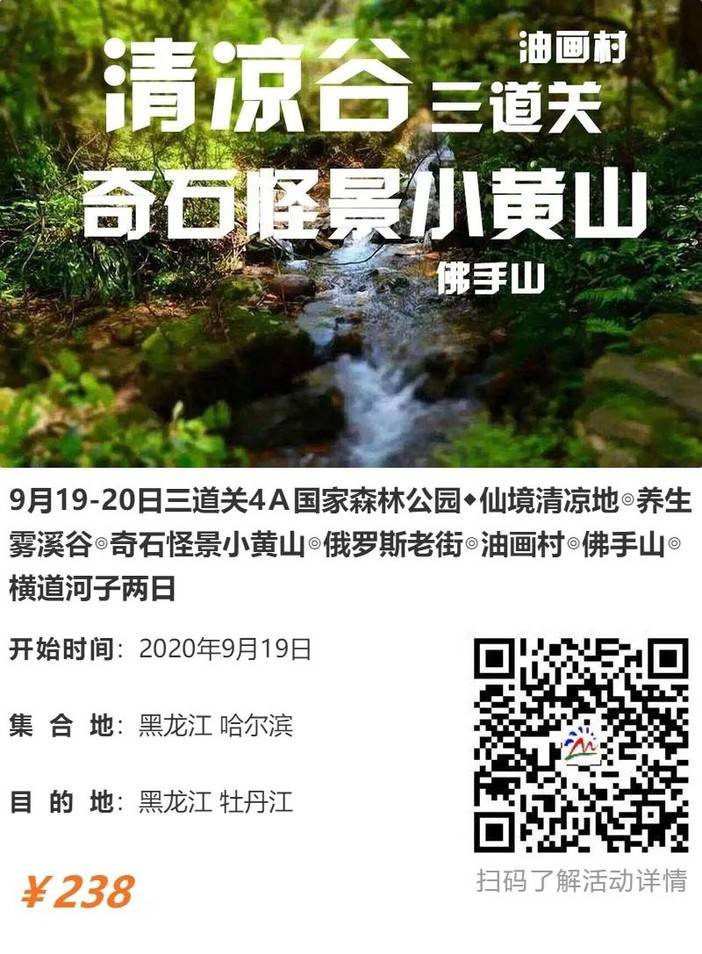 9月19-20日◆三道关4A国家森林公园◆仙境清凉地 养生雾溪谷 奇石怪景小黄山 俄罗斯老街 油画村 佛手山 横道河子两日活动召集【238元/无其它消费】