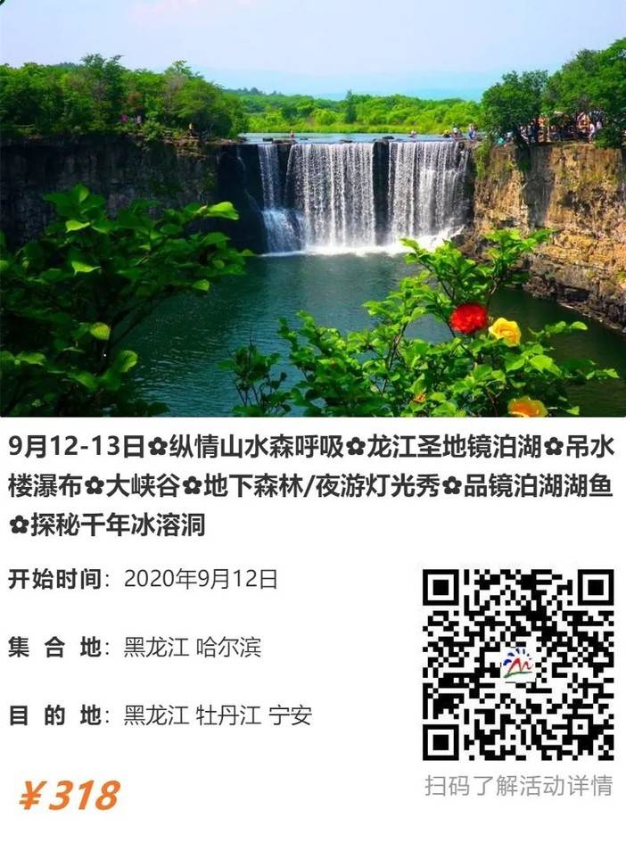 【镜泊湖瀑布已三面环水历史最大】9月12-13/19-20日纵情山水森呼吸 龙江圣地镜泊湖5A景区 吊水楼大瀑布 大瀑布飞人表演 毛公山 探秘火山大峡谷*万年火山口*地下森林熔洞* 品镜泊湖湖鱼 标间住宿独立卫浴 周末两日欢乐游【318元=车费+地下森林溶洞门票景交车+双标住宿+2证1早餐】
