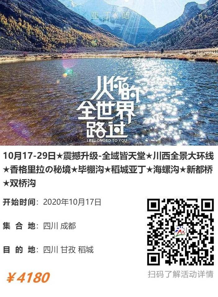 【内文有绝色实拍美景】10月17-29日2020震撼升级★全域皆天堂★川西全景大环线★香格里拉の秘境★毕棚沟★稻城亚丁★海螺沟★新都桥★双桥沟★丹巴/色达★诗与远方の乡城★13天奢华之旅【4180元含当地包车+宾馆住宿+餐+门票+保险】