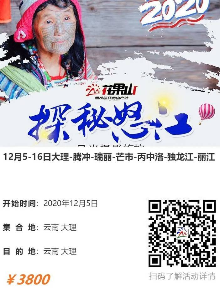 12月5-16日大理-腾冲-瑞丽-芒市-丙中洛-独龙江-丽江 水无不怒石◆山有欲飞峰◆天境怒江◆人神共居峡谷桃源-丙中洛◆隐世秘境-秋那桶-雾里村◆哈旁瀑布◆独龙江寻访纹面女◆老姆登◆知子罗◆中缅边境-瑞丽//芒市◆12日自然奇观之旅【3800元含当地交通+保险+住宿+餐+大门票】