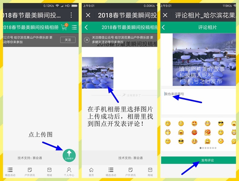 关注“花果山户外”微信公众号,进入“2018春节最美瞬间投稿”相册,直接发送参赛照片,之后点评照片留“昵称或姓名+联系方式”,并附简单的图片说明文。