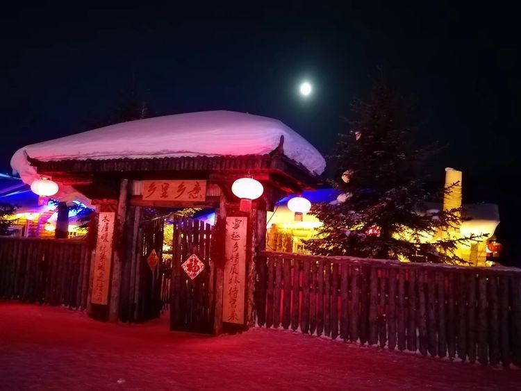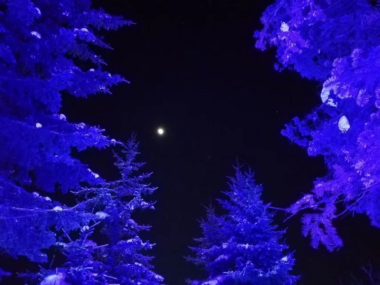 一个人和你同步在雪乡观赏150年一遇的超级 · 蓝 · 血 · 红红火火的大月亮