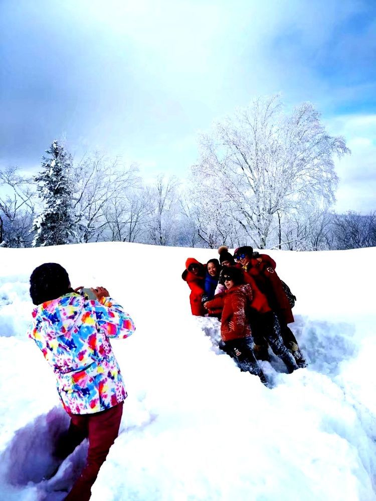 来自全国各地的小伙伴为雪乡而来,廊坊猛男、桂林辣妹……不惧严寒,畅享雪乡之旅!