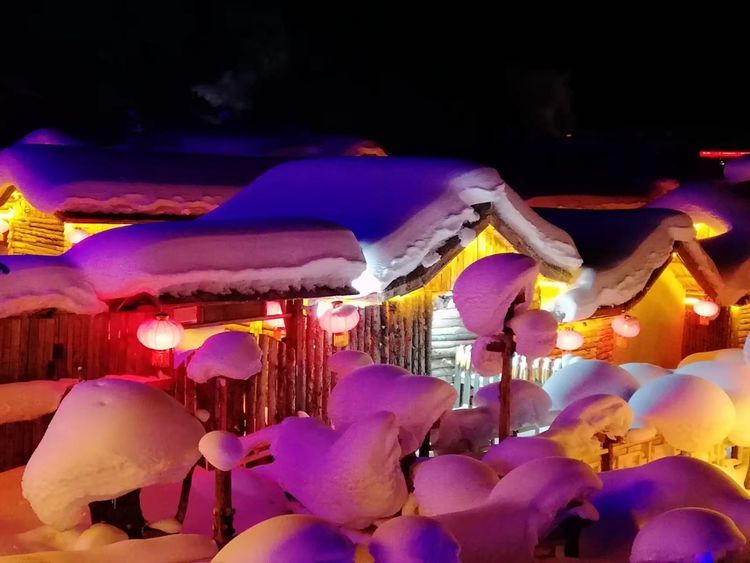 雪乡!雪乡!中国冬景最美的地方。一座座漂亮的”雪蘑菇”,映衬着皑皑白雪的大红灯笼,相得益彰,和谐生辉,像极了童话绘本里的世界。