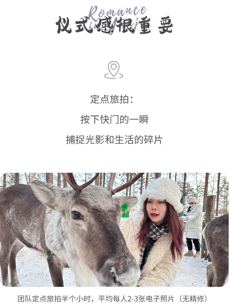 4、 11月下旬之前,如遇气候原因雪量不够,无法运行雪地摩托,需要徒步进入景区观看驯鹿,或者取消雪岭行程,费用现退。