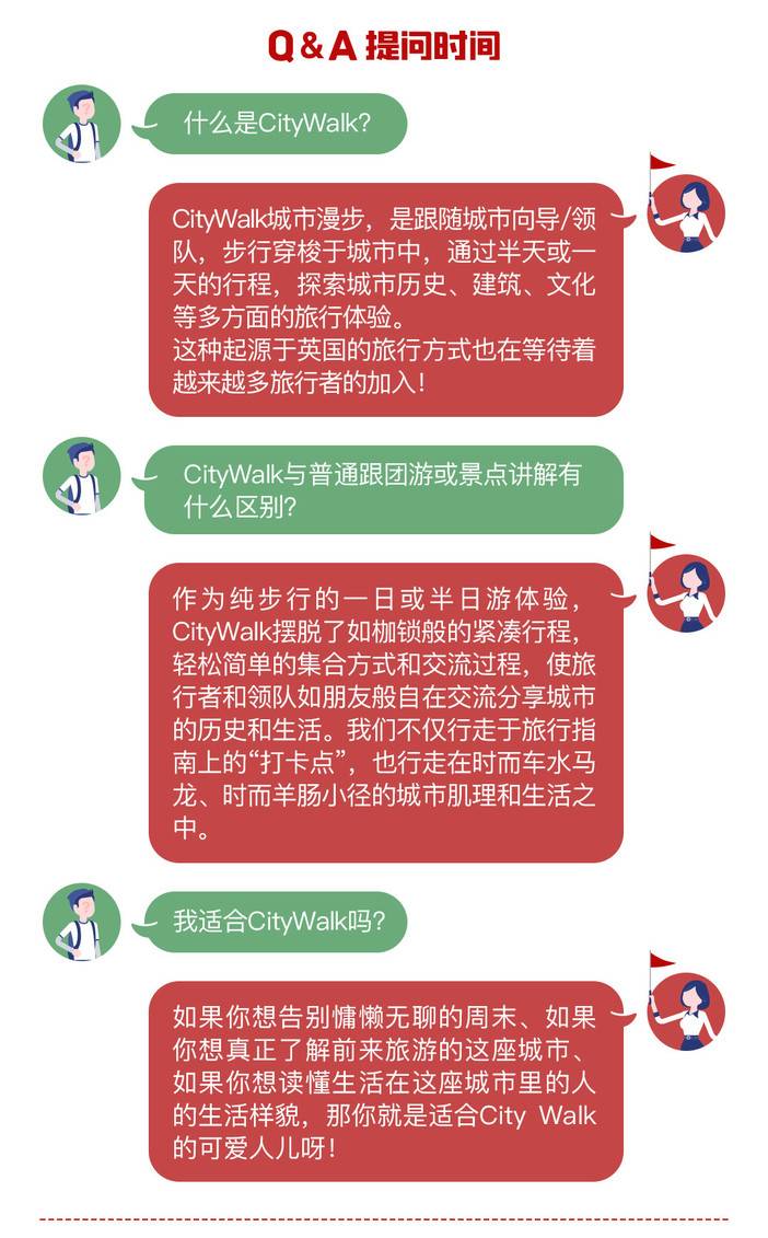 CityWalk 最早的概念来自英国的伦敦,在那个充满历史文化的大城市里, 人们用行走的概念来体味自己的城市。路线特色在于多变性,这样的路线让你即使身处在商业地段也能体味到不同的感受,也许穿过一条弄堂看见的就是几个世纪前的古代建筑,摆渡一条河就回到了80年代时的老公交汽车站。路线原则上避开喧闹的旅游景点,并用自己的双脚完成。